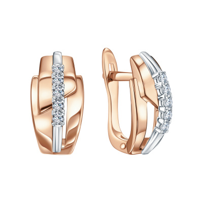 Серьги с 10 бриллиантами природными, 0.29 карат, огранка круг 57 граней, цвет 3, чистота 6, тип огранки А; Розовое и белое золото 585 пробы.