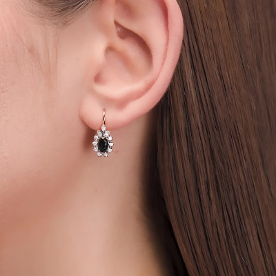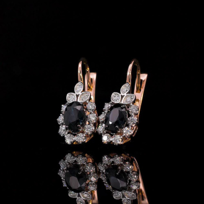 Серьги с 16 бриллиантами природными, 0.22 карат, огранка круг 57 граней, цвет 3, чистота 6, тип огранки А; 6 бриллиантами природными, 0.04 карат, огранка круг 57 граней, цвет 3, чистота 6, тип огранки А; 2 сапфирами природными, 1.09 карат, цвет 2, чистота 2, тип огранки Б; Розовое золото 585 пробы.
