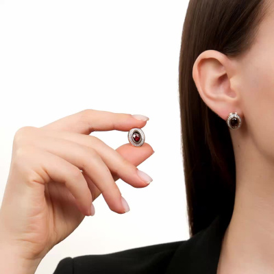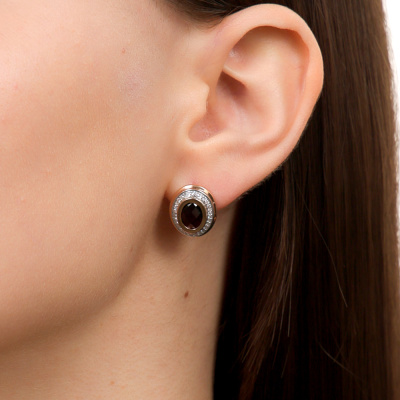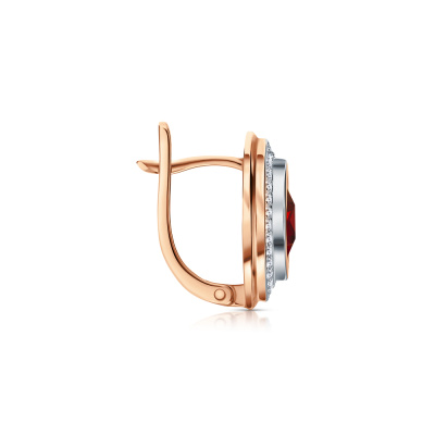 Серьги с 60 бриллиантами природными, 0.22 карат, огранка круг 17 граней, цвет 2, чистота 2, тип огранки Б; 2 гранатами природными, 3.53 карат; Розовое золото 585 пробы.