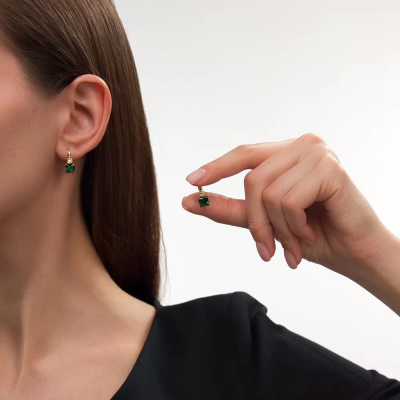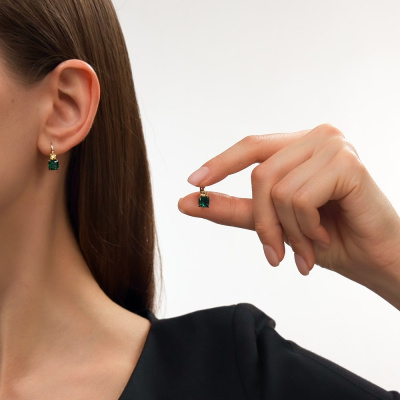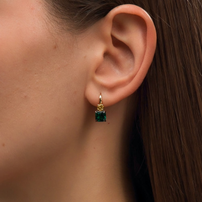 Серьги с 2 гидротермальными изумрудами, 2.05 карат; 2 сапфирами желтыми природными, 0.53 карат; Желтое золото 585 пробы.