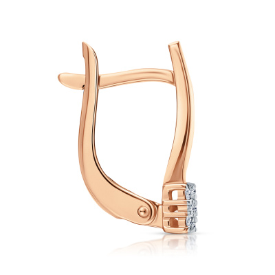 Серьги с 2 бриллиантами природными, 0.03 карат, огранка круг 57 граней, цвет 3, чистота 6, тип огранки А; 8 бриллиантами природными, 0.06 карат, огранка круг 57 граней, цвет 3, чистота 6, тип огранки А; 8 бриллиантами природными, 0.03 карат, огранка круг 17 граней, цвет 2, чистота 2, тип огранки А; Розовое золото 585 пробы.