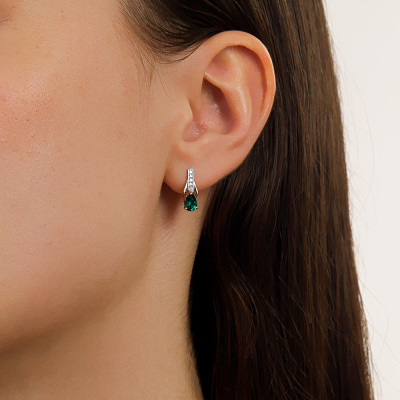 Золотые серьги с бриллиантами природными и изумрудами выращенными