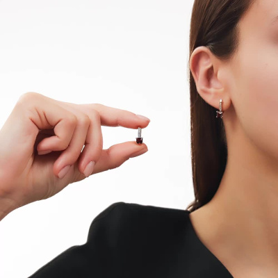 Золотые серьги с бриллиантами природными и гранатами природными