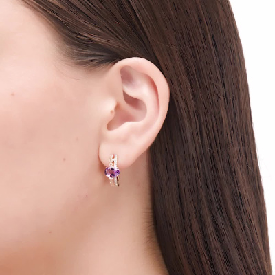 Серьги с 22 бриллиантами природными, 0.08 карат, огранка круг 17 граней, цвет 2, чистота 2, тип огранки А; 2 аметистами природными, 2.28 карат; 12 топазами бесцветными природными, 0.19 карат; Розовое золото 585 пробы.