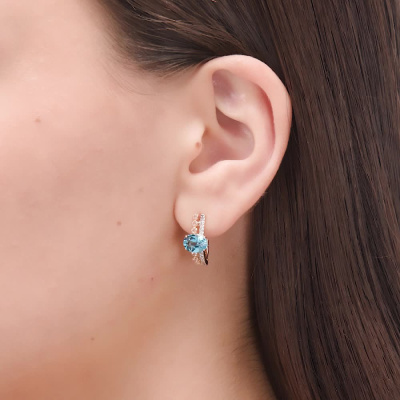 Серьги с 22 бриллиантами природными, 0.08 карат, огранка круг 17 граней, цвет 2, чистота 2, тип огранки А; 2 топазами свисс природными, 2.92 карат; 12 топазами бесцветными природными, 0.19 карат; Розовое золото 585 пробы.