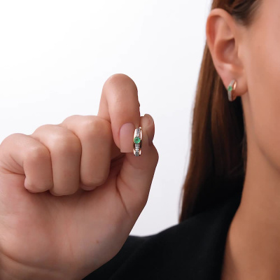 Серьги с 40 бриллиантами природными, 0.1 карат, огранка круг 17 граней, цвет 2, чистота 2, тип огранки Б; 2 изумрудами природными, 0.27 карат, цвет 3, чистота 3, тип огранки В; Розовое золото 585 пробы.