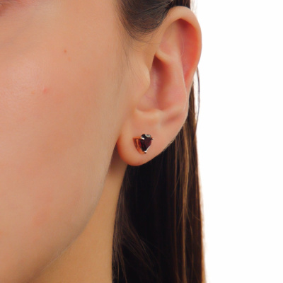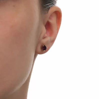 Серьги с 2 гранатами природными, 1.66 карат; Розовое золото 585 пробы.