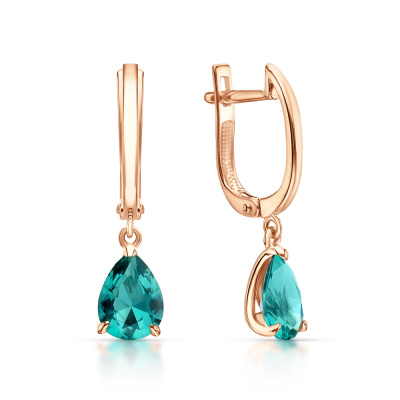 Серьги с 2 наноситалами турмалинами параиба, 1.79 карат; Розовое золото 585 пробы.