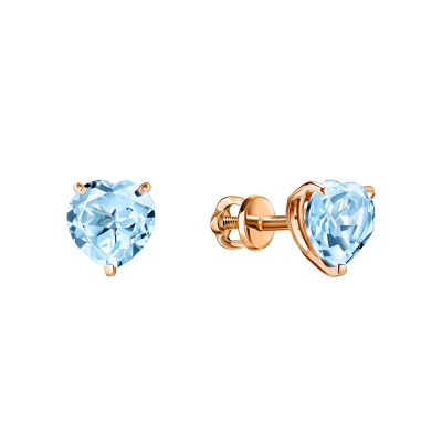 Серьги с 2 топазами скай природными, 1.8 карат; Розовое золото 585 пробы.