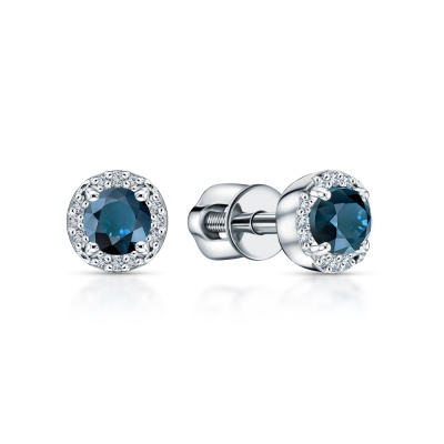 Серьги с 24 бриллиантами природными, 0.05 карат, огранка круг 17 граней, цвет 2, чистота 2, тип огранки А; 2 топазами лондон природными, 0.6 карат; Белое золото 585 пробы.