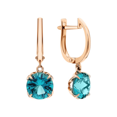 Серьги с 2 наноситалами турмалинами параиба; Розовое золото 585 пробы.