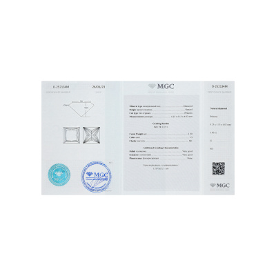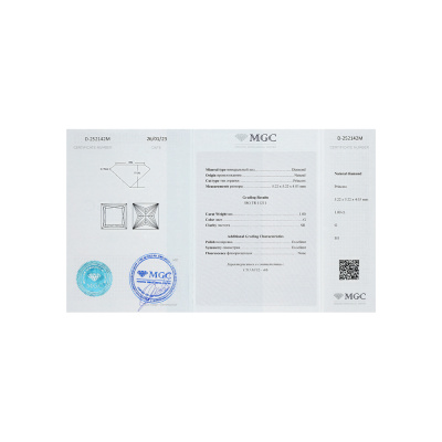 Серьги с 2 бриллиантами природными, 2 карат, огранка принцесса 65 граней, цвет 4, чистота 6, тип огранки А; Платина 950 пробы.