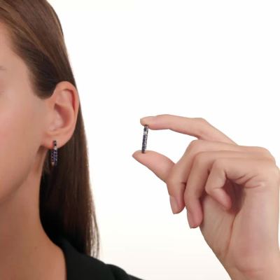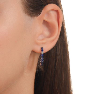 Серьги с 28 сапфирами синтетическими, 2.31 карат; 2 сапфирами бесцветными природными, 0.15 карат; Розовое золото 585 пробы.
