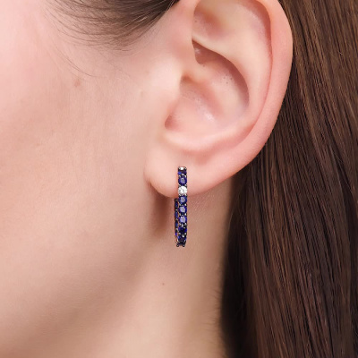 Серьги с 28 сапфирами синтетическими, 2.29 карат; 2 сапфирами бесцветными природными, 0.15 карат; Розовое золото 585 пробы.