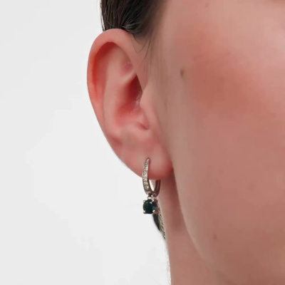 Золотые серьги с бриллиантами природными и сапфиром природным