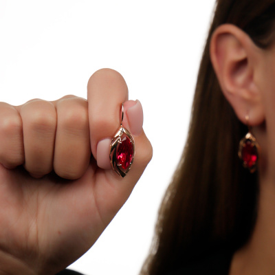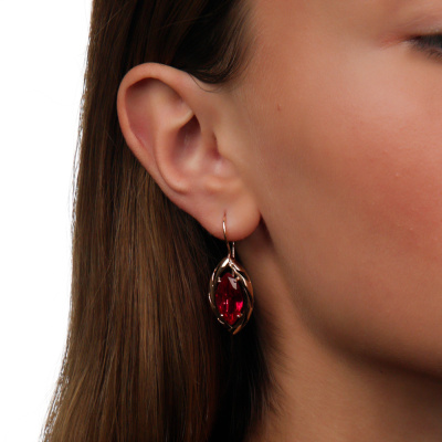 Серьги с 2 рубинами синтетическими, 8.85 карат; Розовое золото 585 пробы.