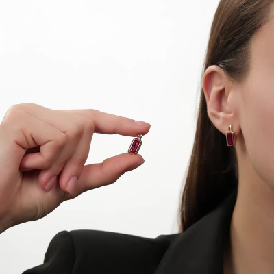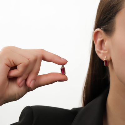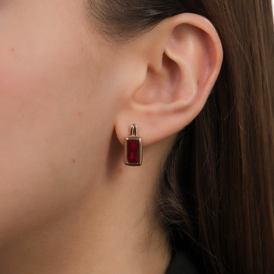 Золотые серьги с рубинами выращенными