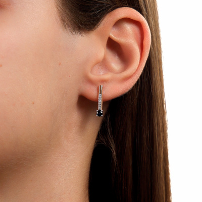 Серьги с 12 бриллиантами природными, 0.04 карат, огранка круг 17 граней, цвет 2, чистота 2, тип огранки А; 2 сапфирами природными, 0.37 карат, цвет 2, чистота 2, тип огранки В; Розовое золото 585 пробы.