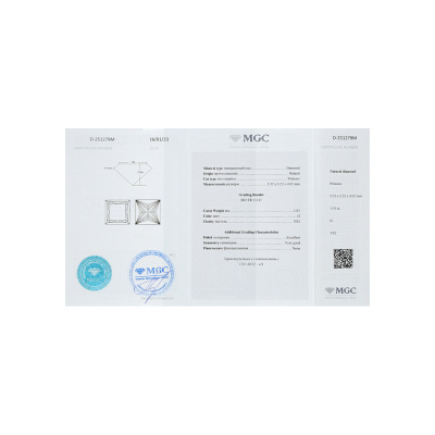 Серьги с 1 бриллиантом природным, 1.01 карат, огранка принцесса 65 граней, цвет 4, чистота 5, тип огранки А; 1 бриллиантом природным, 1.01 карат, огранка принцесса 65 граней, цвет 4, чистота 6, тип огранки А; Платина 950 пробы.