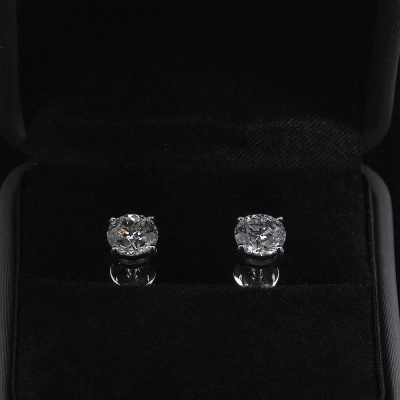 Серьги с 2 бриллиантами природными, 1.8 карат, огранка круг 57 граней, цвет 5, чистота 4, тип огранки А; Платина 950 пробы.