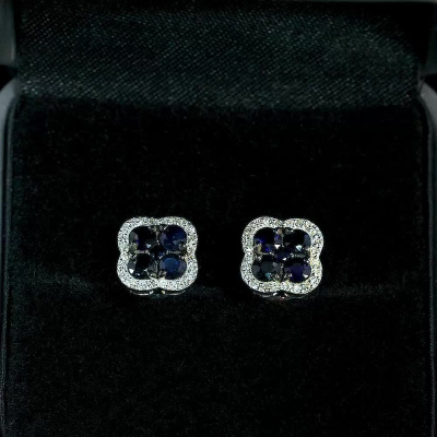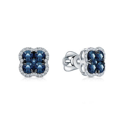 Серьги с 48 бриллиантами природными, 0.1 карат, огранка круг 17 граней, цвет 2, чистота 2, тип огранки Б; 8 сапфирами природными, 0.76 карат, цвет 2, чистота 2, тип огранки В; 2 сапфирами природными, 0.06 карат, цвет 2, чистота 2, тип огранки В; Белое золото 585 пробы.
