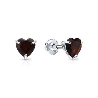 Серьги с 2 гранатами природными, 1.81 карат; Белое золото 585 пробы.