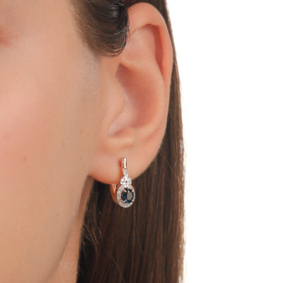 Серьги с 46 бриллиантами природными, 0.09 карат, огранка круг 17 граней, цвет 2, чистота 2, тип огранки А; 2 сапфирами природными, 0.82 карат, цвет 2, чистота 2, тип огранки Б; Розовое золото 585 пробы.