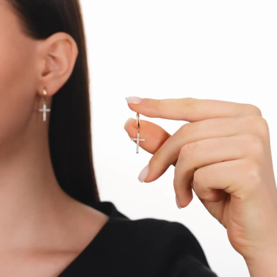 Серьги с 34 бриллиантами природными, 0.11 карат, огранка круг 17 граней, цвет 2, чистота 2, тип огранки Б; Розовое золото 585 пробы.