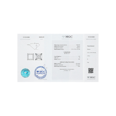 Серьги с 2 бриллиантами природными, 2.01 карат, огранка принцесса 65 граней, цвет 1, чистота 5, тип огранки А; Платина 950 пробы.