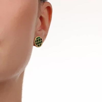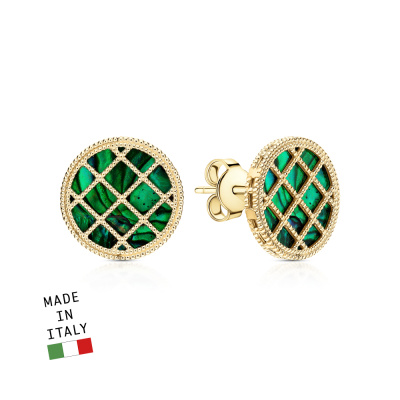 Серьги с 2 перламутрами зелеными природными; Желтое золото 585 пробы.