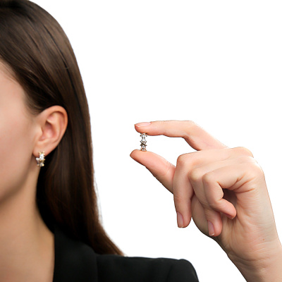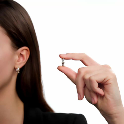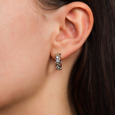 Серьги с 8 бриллиантами природными, 0.24 карат, огранка круг 57 граней, цвет 3, чистота 6, тип огранки А; Желтое и белое золото 585 пробы.