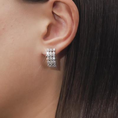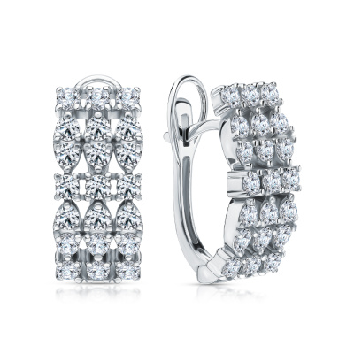 Серьги с 42 бриллиантами природными, 1.85 карат, огранка круг 57 граней, цвет 3, чистота 6, тип огранки А; Белое золото 585 пробы.