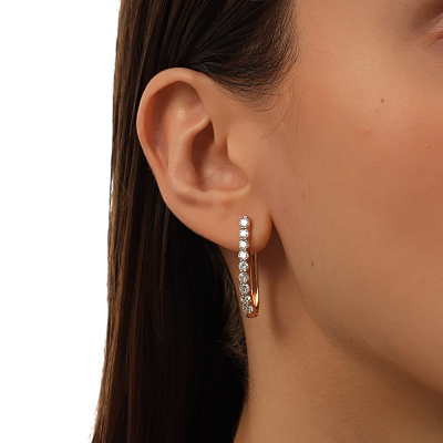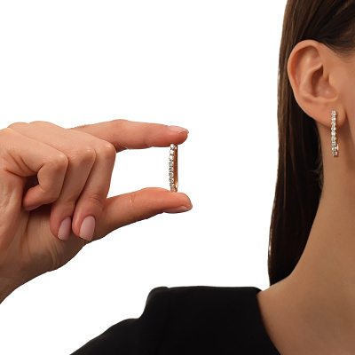 Серьги с 18 бриллиантами природными, 1.6 карат, огранка круг 57 граней, цвет 4, чистота 6, тип огранки А; Розовое золото 585 пробы.