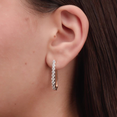 Серьги с 18 бриллиантами природными, 1.59 карат, огранка круг 57 граней, цвет 4, чистота 6, тип огранки А; Розовое золото 585 пробы.