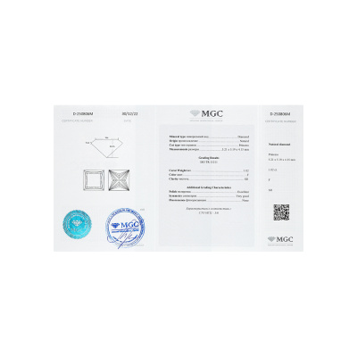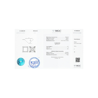 Серьги с 1 бриллиантом природным, 1 карат, огранка принцесса 65 граней, цвет 3, чистота 5, тип огранки А; 1 бриллиантом природным, 1 карат, огранка принцесса 65 граней, цвет 4, чистота 4, тип огранки А; Белое золото 750 пробы.