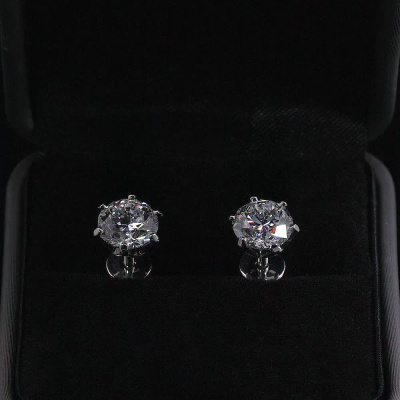 Серьги с 1 бриллиантом природным, 1.5 карат, огранка круг 57 граней, цвет 4, чистота 7, тип огранки А; 1 бриллиантом природным, 1.5 карат, огранка круг 57 граней, цвет 4, чистота 6, тип огранки А; Платина 950 пробы.