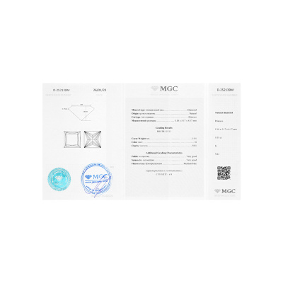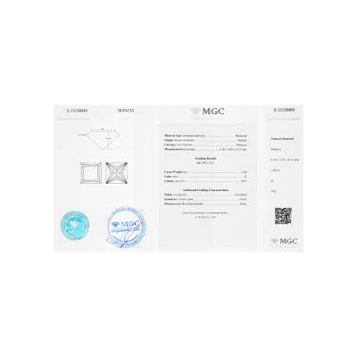 Серьги с 2 бриллиантами природными, 2.01 карат, огранка принцесса 65 граней, цвет 4, чистота 4, тип огранки А; Платина 950 пробы.