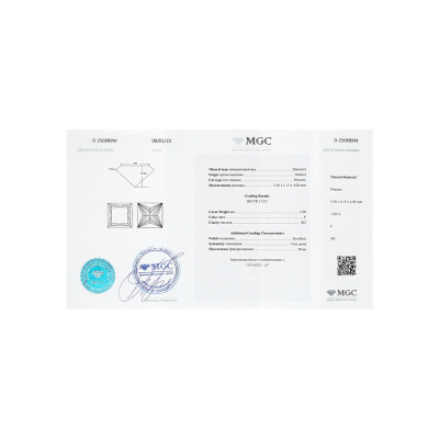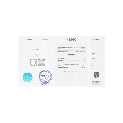Серьги с 1 бриллиантом природным, 1 карат, огранка принцесса 65 граней, цвет 3, чистота 7, тип огранки А; 1 бриллиантом природным, 1 карат, огранка принцесса 65 граней, цвет 3, чистота 6, тип огранки А; Белое золото 750 пробы.