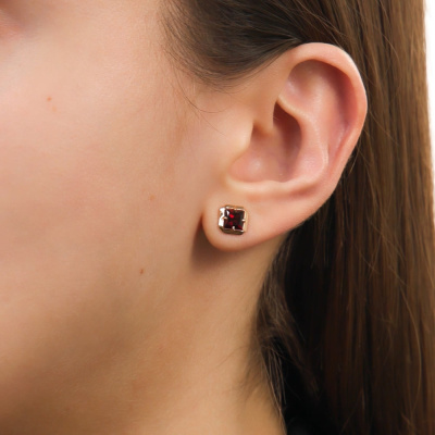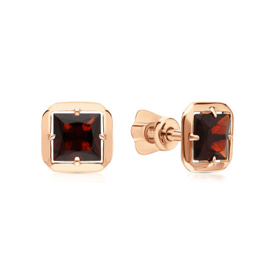 Серьги с 2 гранатами природными, 1.6 карат; Розовое золото 585 пробы.