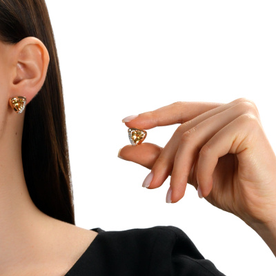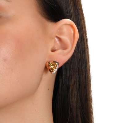 Золотые серьги с бриллиантами природными и цитринами природными