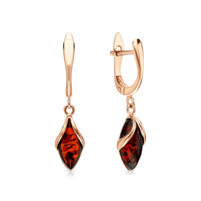 Серьги с 2 янтарями коричневыми природными, 1.6 карат; Розовое золото 585 пробы.