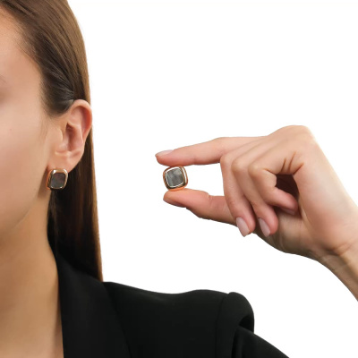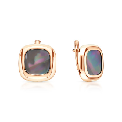 Серьги с 2 перламутрами черными природными, 4.73 карат; Розовое золото 585 пробы.