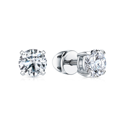 Серьги с 2 бриллиантами природными, 1.8 карат, огранка круг 57 граней, цвет 3, чистота 6, тип огранки А; Белое золото 750 пробы.