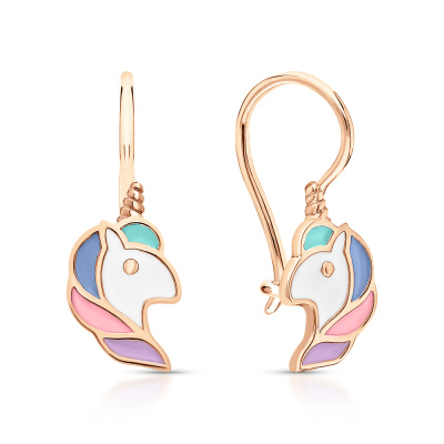 Серьги, вставка: эмаль микс; Розовое золото 585 пробы.