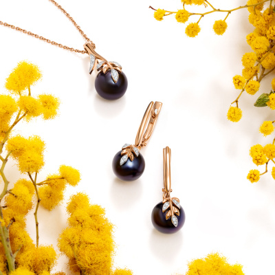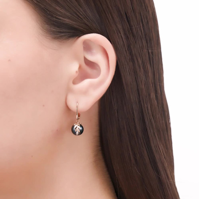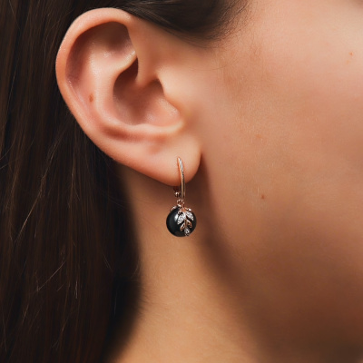 Серьги с 6 бриллиантами природными, 0.02 карат, огранка круг 17 граней, цвет 2, чистота 2, тип огранки А; 6 бриллиантами природными, 0.01 карат, огранка круг 17 граней, цвет 2, чистота 2, тип огранки А; 2 жемчугами пресноводными культ.черными; Розовое золото 585 пробы.
