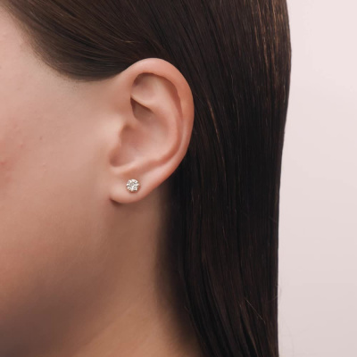 Серьги с 2 бриллиантами желтыми природными, 1 карат, огранка круг 57 граней, цвет 8-5, чистота 6, тип огранки А; Желтое золото 585 пробы.