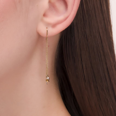 Серьги с 4 бриллиантами природными, 0.01 карат, огранка круг 17 граней, цвет 2, чистота 2, тип огранки Б; 2 цитринами природными, 0.19 карат; Желтое золото 585 пробы.