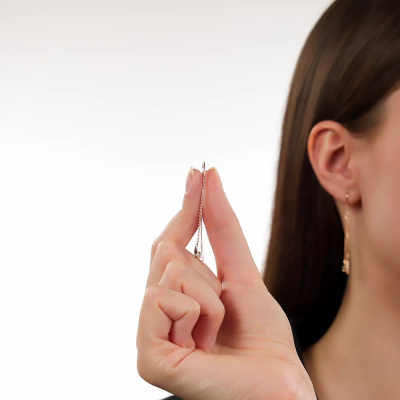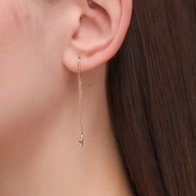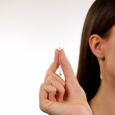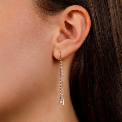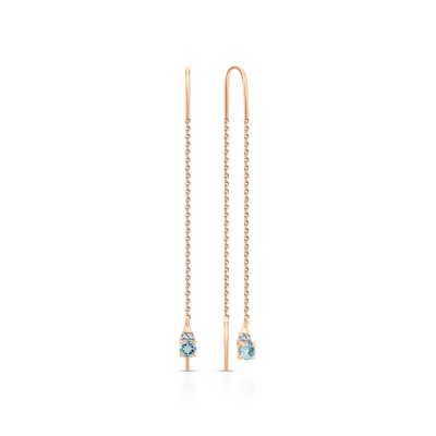 Серьги с 4 бриллиантами природными, 0.01 карат, огранка круг 17 граней, цвет 2, чистота 2, тип огранки Б; 2 топазами свисс природными, 0.26 карат; Розовое золото 585 пробы.