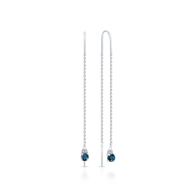 Серьги с 4 бриллиантами природными, 0.01 карат, огранка круг 17 граней, цвет 2, чистота 2, тип огранки Б; 2 топазами лондон природными, 0.26 карат; Белое золото 585 пробы.