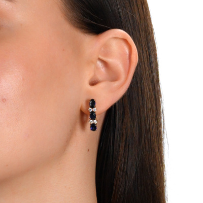 Серьги с 8 бриллиантами природными, 0.37 карат, огранка круг 57 граней, цвет 4, чистота 5, тип огранки А; 6 сапфирами синтетическими, 3.09 карат; Розовое золото 585 пробы.